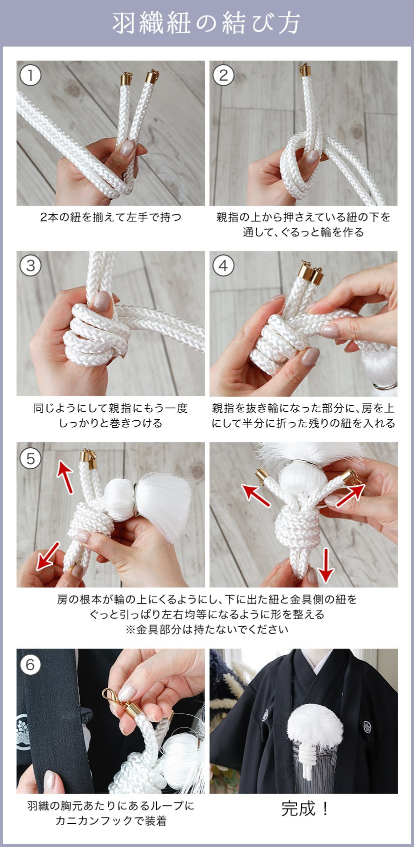 延長パーツが付属しているものは、袴紐が短い仕上がりになっています。