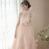 デコルテが透け感のある大人っぽいデザイン,ウエストにはダブルリボン,ロングスカートは2枚重ねチュール