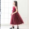 デコルテシースルーロングドレス,キッズモデル着用,レッド
