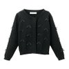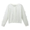 ボタンを見せないデザインにすることで、カジュアルさがなくなり上品な印象の羽織物に。