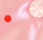【生地のつれ】 上の写真ではわかりにくいですが、ボタン下から赤い●シールの間に、線がはいっています。 ボタンホールからボタンが糸が出ている場合、出ている糸を切るだけで大丈夫だと思いますが、間違ってボタンホールを作っている糸のほうも切ってしまうと、全部がほつれますので注意が必要です。 |