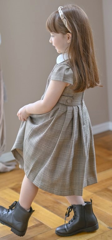 きれいにタックが入ったスカートを合わせたワンピースは、