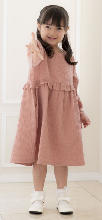 ダブルガーゼのナチュラルな風合いが魅力のキッズ女の子ワンピースです。