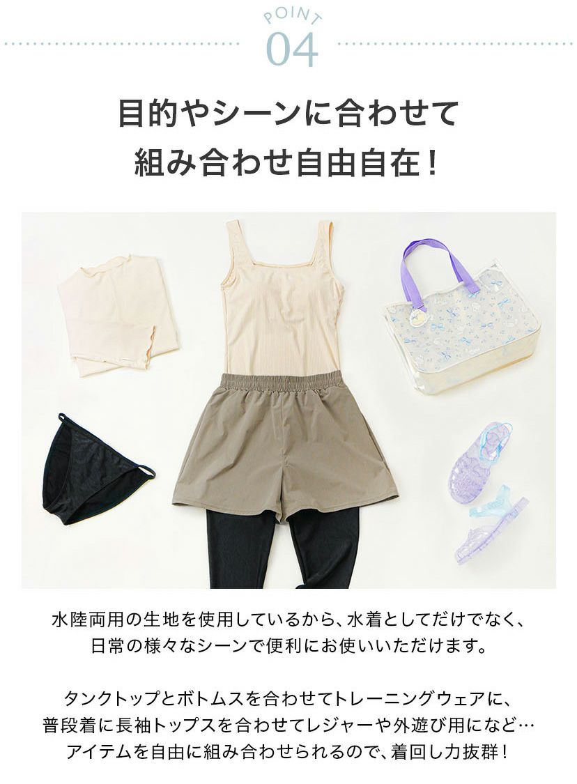 他の画像を見る 目玉 水陸両用レディースセットアップ 長袖ラッシュガードを着て水着として、ヨガ、ランニングウェア、ルームウェアとしても使えるコーデの幅も広がる4点セット/ZSL01 送料無料【目玉セール】新作 体型カバー 水着 4点セット UVカット 水陸両用 レディース ジュニア 中学生 高校生 水着 セットアップ 4点[タンクトップ/長袖ラッシュガード/ショートパンツ/アンダーショーツ] TAK キャサリンコテージ 通常価格 ¥ 6,580 のところ ¥ 3,781 税込 カートに入れる お気に入りに登録する 5.00 (1)